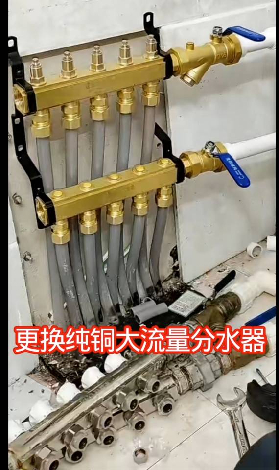 ①专业清洗安装地热、暖气片、更换大流量铜分水器