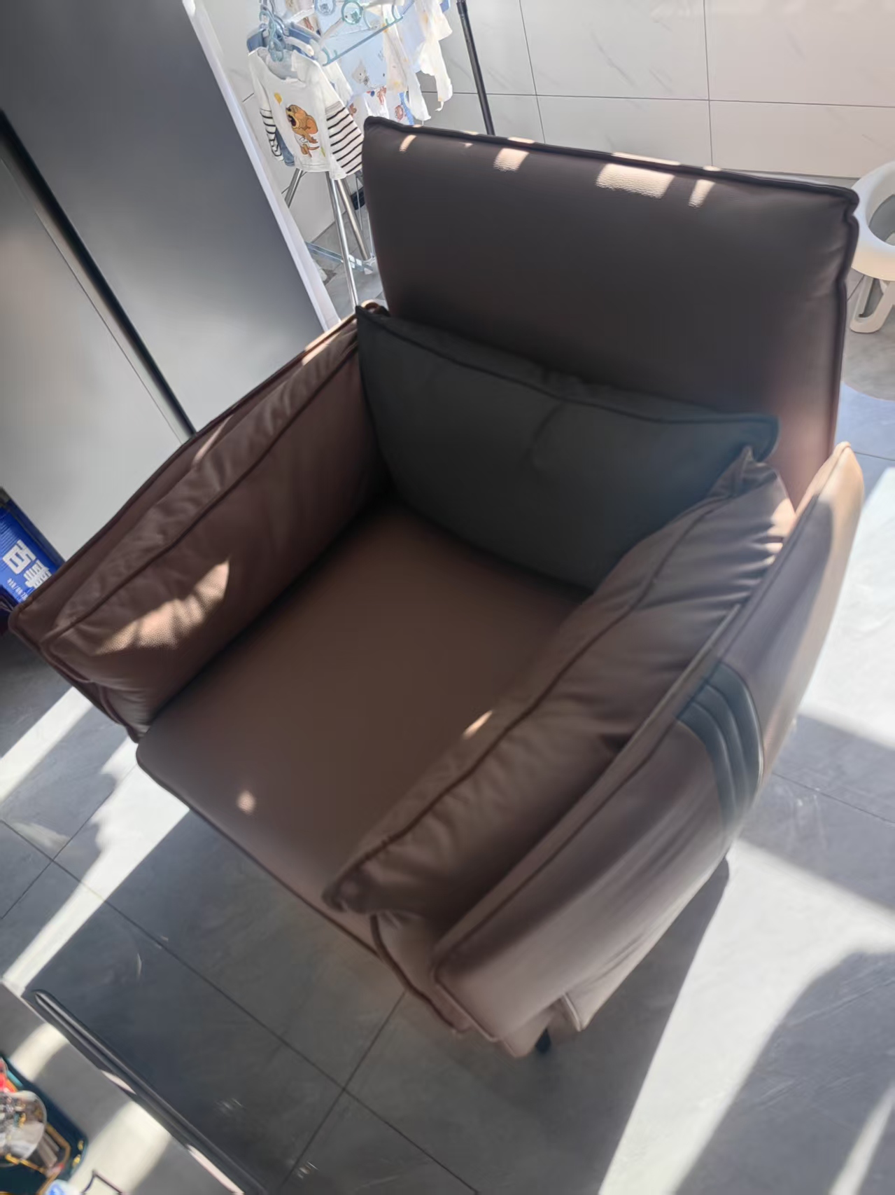 合隆卖二手闲置单人大沙发,尺寸1mX1m,没有任何损伤,因家中有孩子放不下了现出售350元,合隆自提