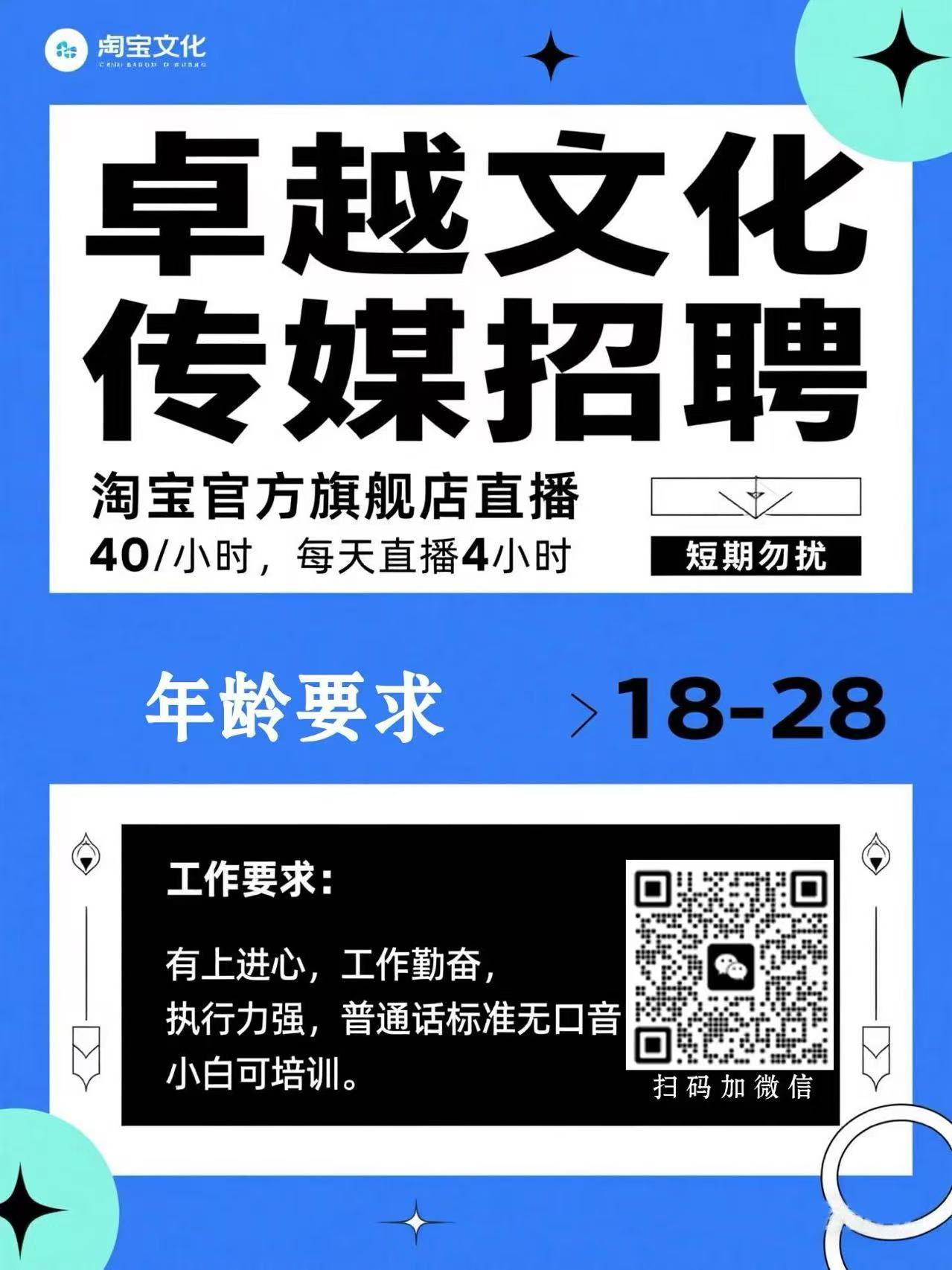 农安卓越文化传媒招淘宝官方旗舰店带货主播