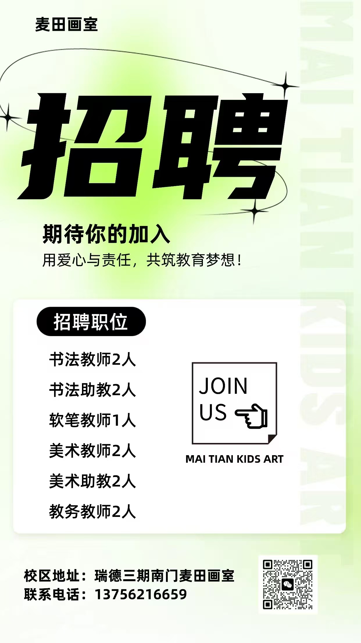 麦田画室因发展需要,诚聘以下岗位: