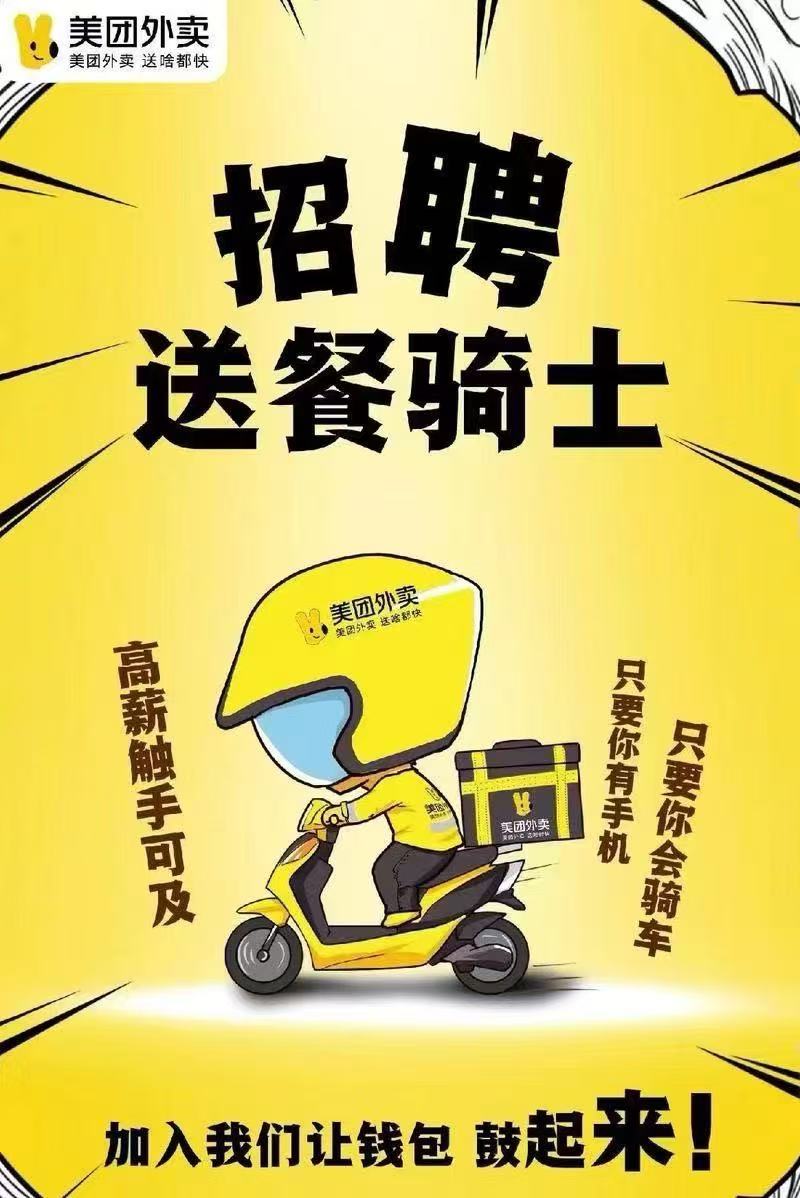 招聘晚班骑手每月2天休息满勤200元 免费