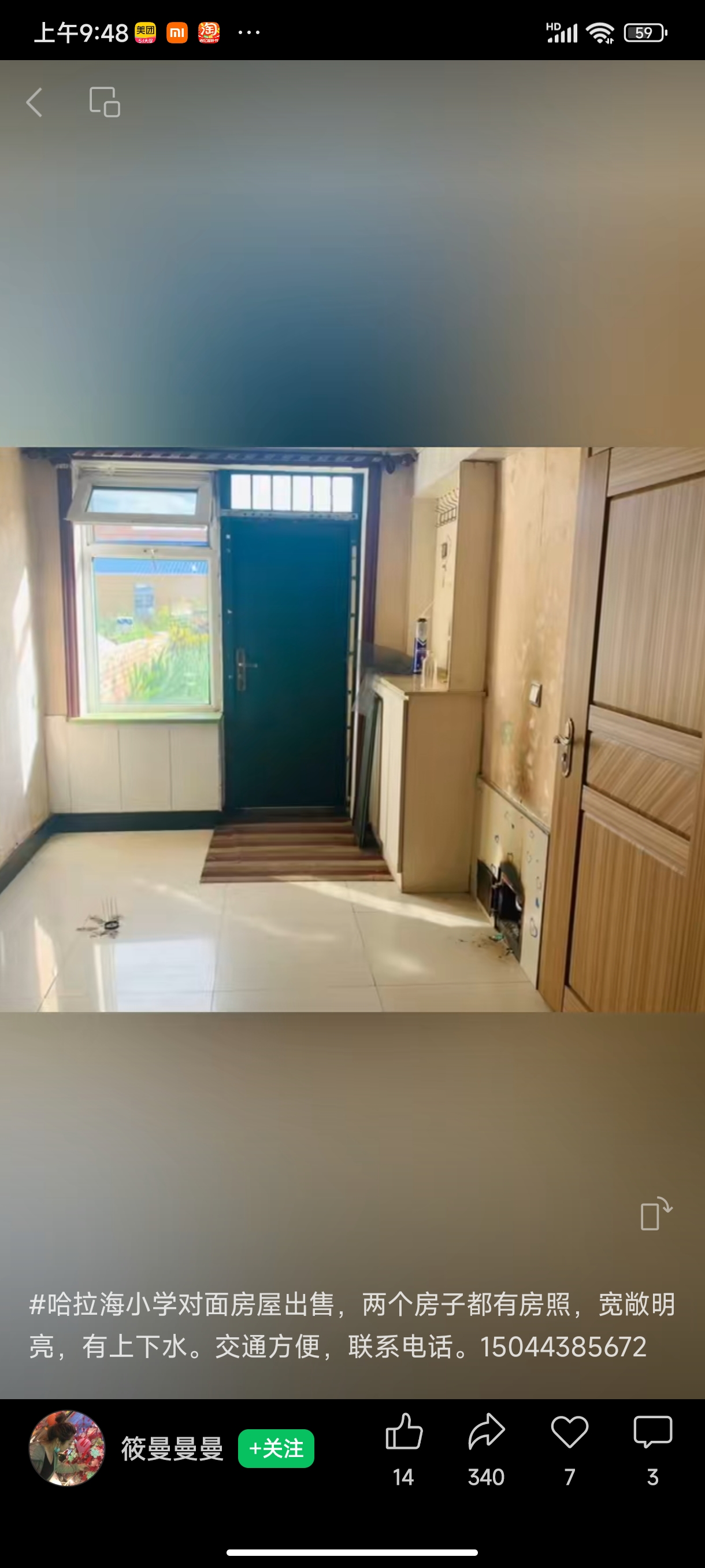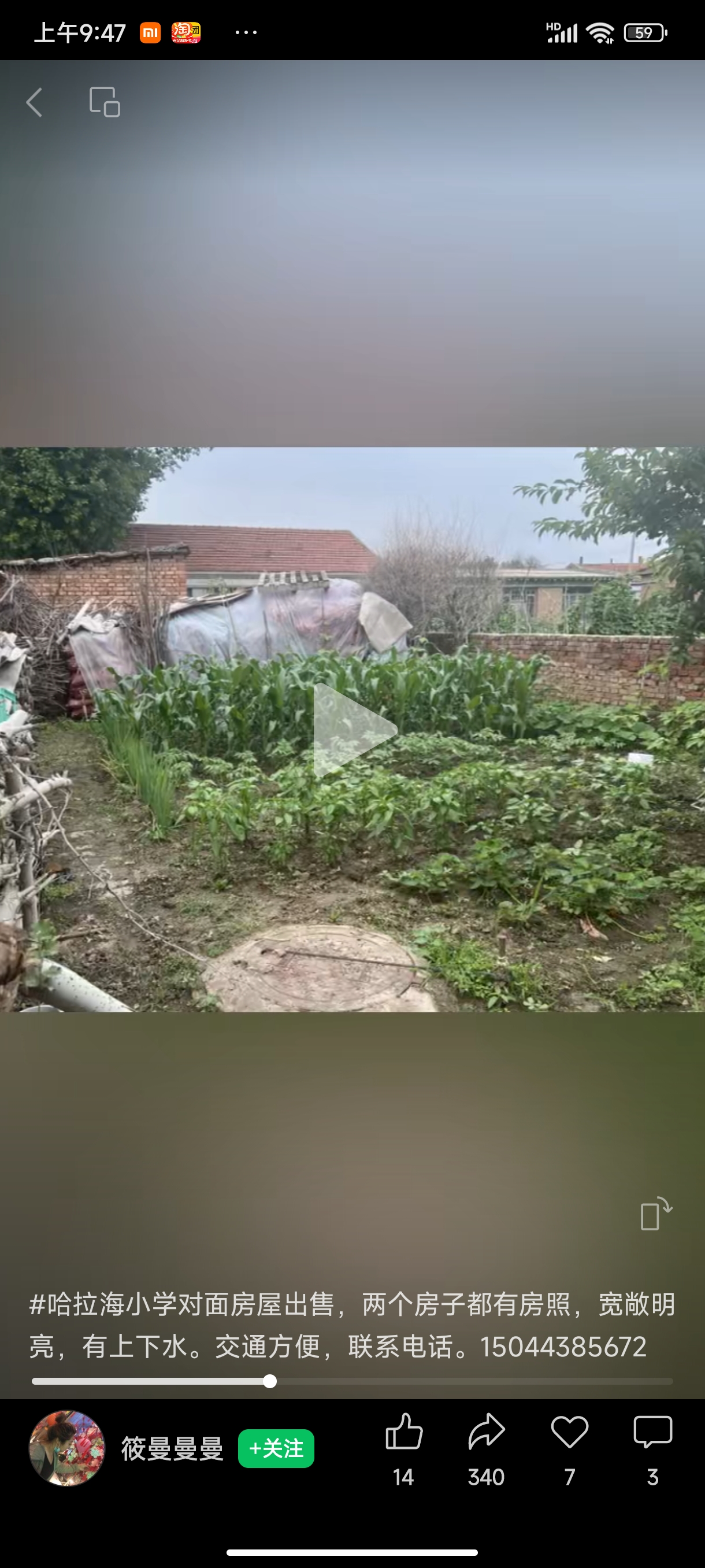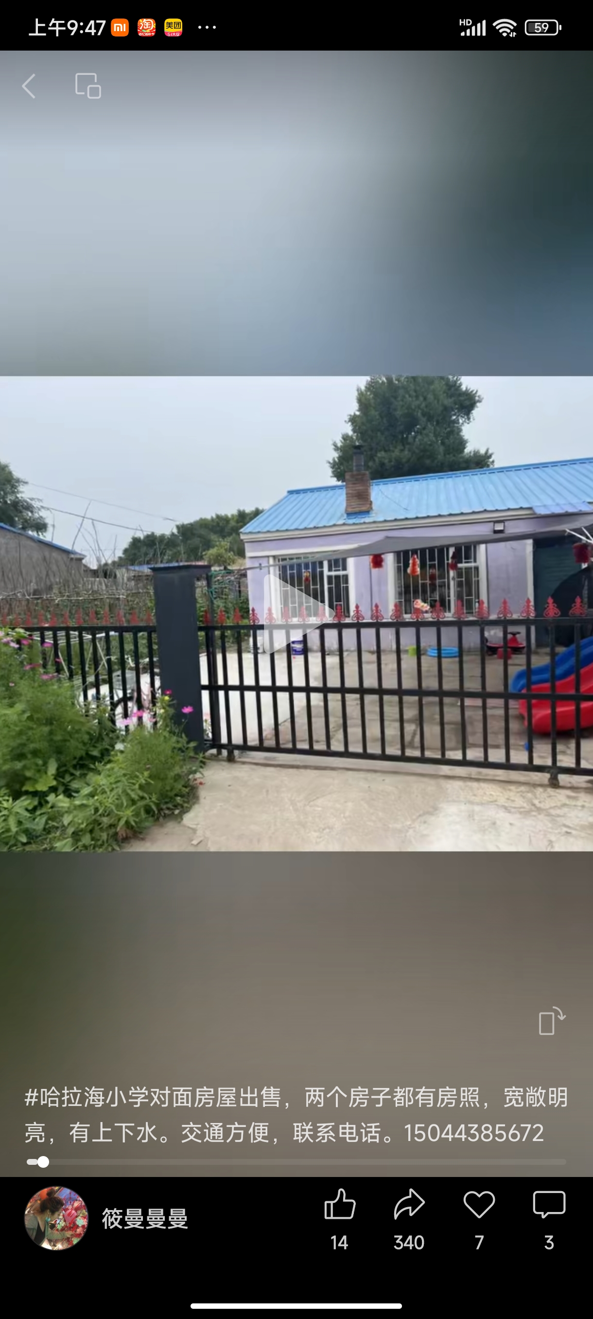 #哈拉海小学对面房屋出售,整个院子600平,两个房子都有房照,都是三间房,宽敞明亮,有上下水。交通方便,联系电话。