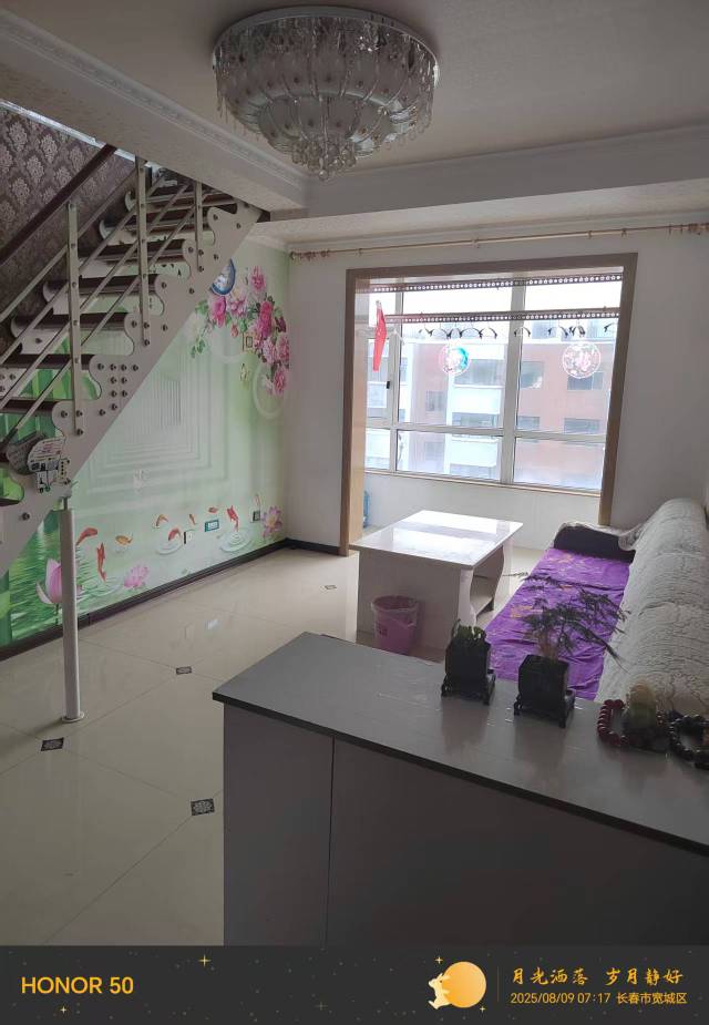 这套大两居,正南朝向,阳光明媚,采光极好,前有阳台,后有阳台,双阳台设计,通风采光两不误,宽大的楼梯,一梯两户,舒适又安全。大阳台和大飘窗,视野开阔,生活气息十足。更有私家露台,享受阳光雨露,生活更惬意。产权清晰无纠纷,满五无贷款,无抵押,过户方便,省心省力。保养良好,送阁楼,生活设施一应俱全。卖房原因,回老家发展,不带走半点遗憾。