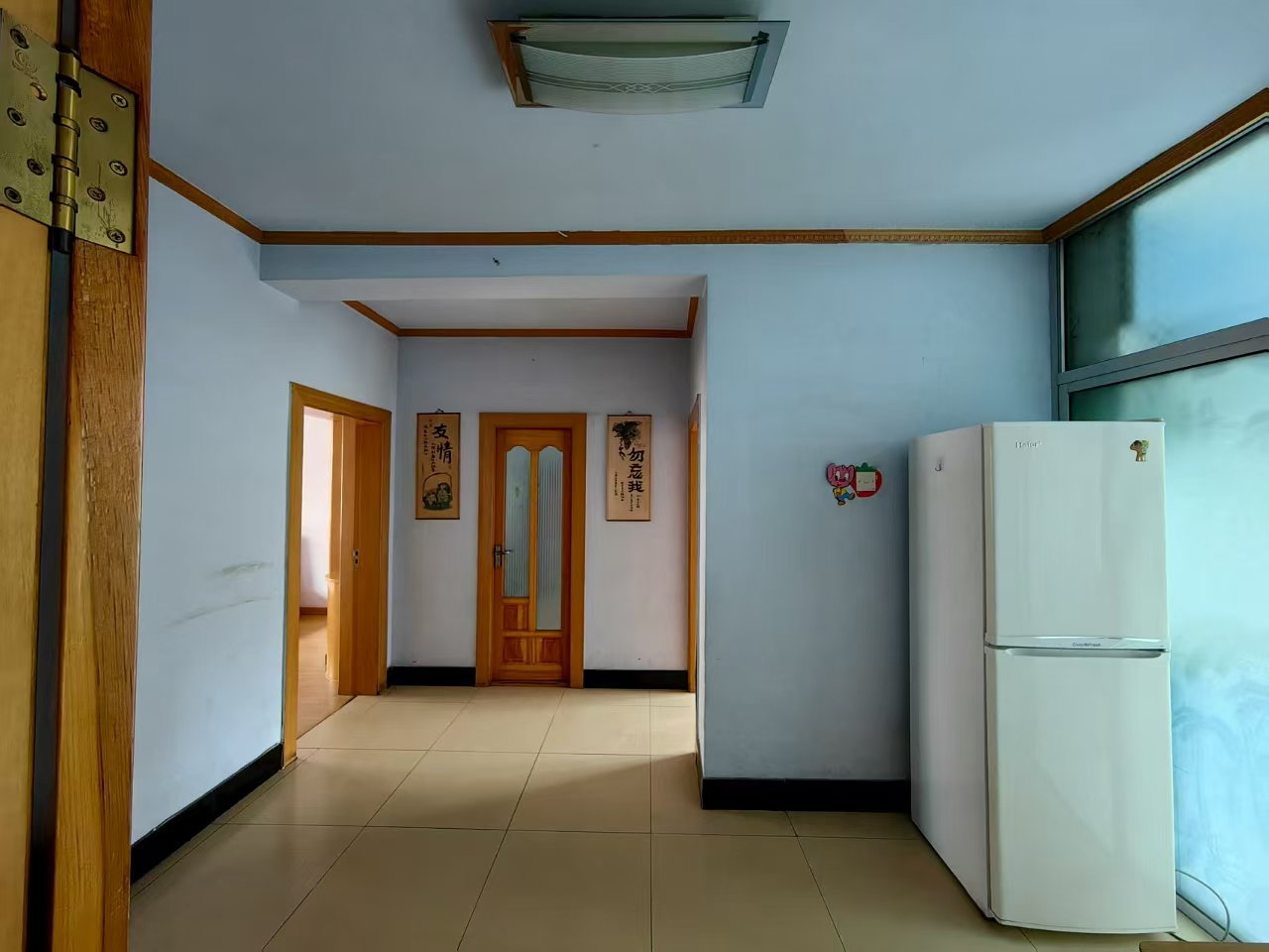 出租:农安县十中路南劳动局家属楼3楼,65平米,两室一小厅南北通透。下楼到十中2分钟路程。新换的窗户,又亮堂又保暖!